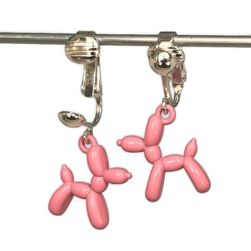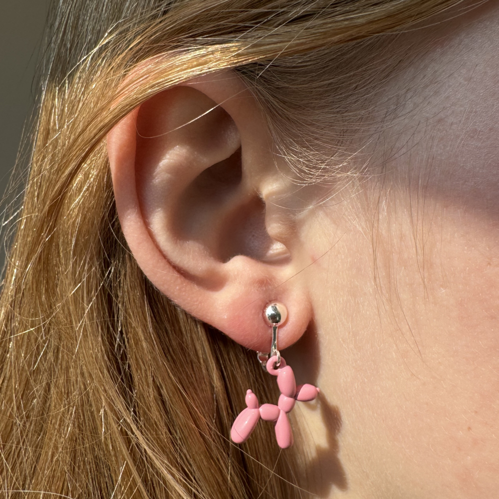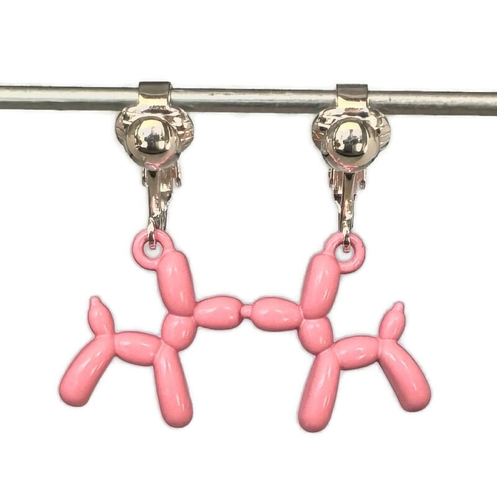 Clip oorbellen ballonnen hond roze, hangoorbellen