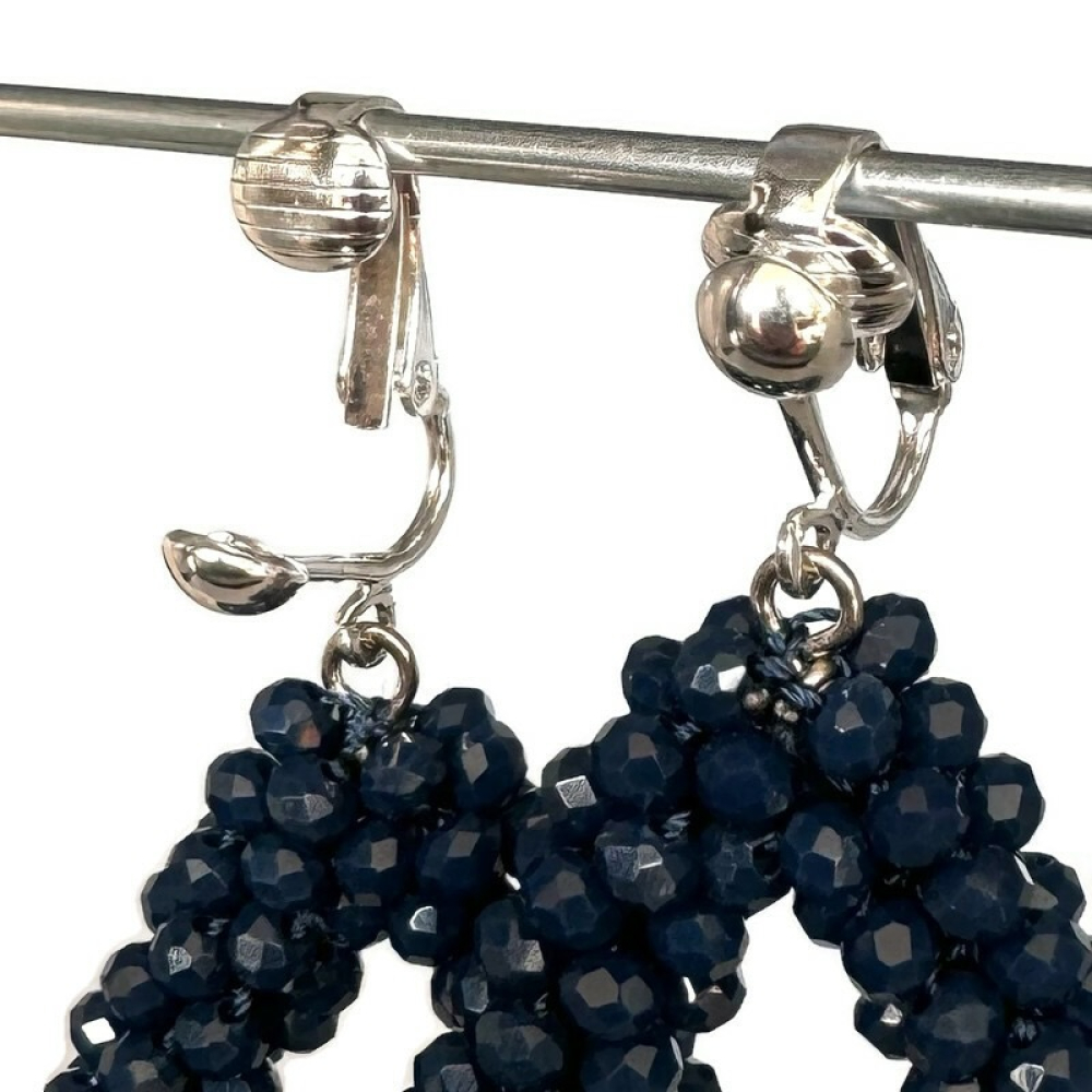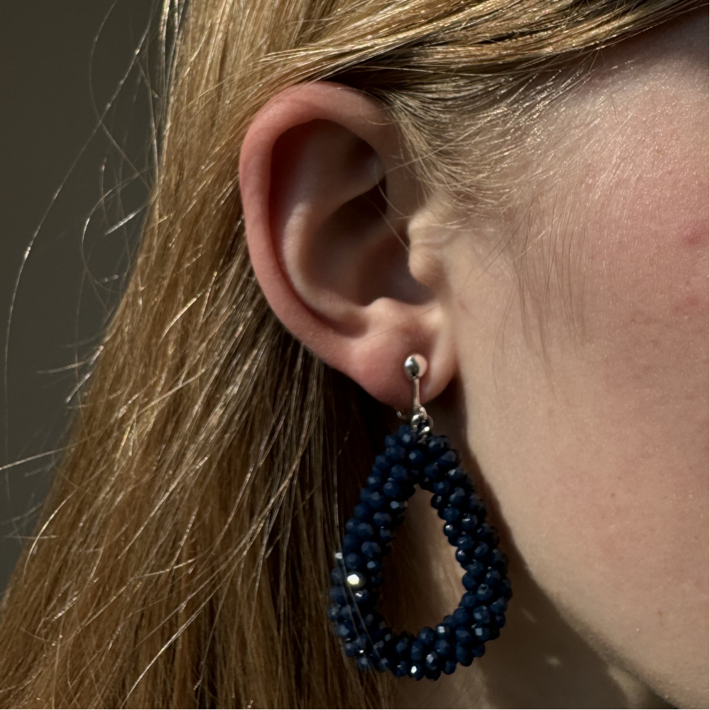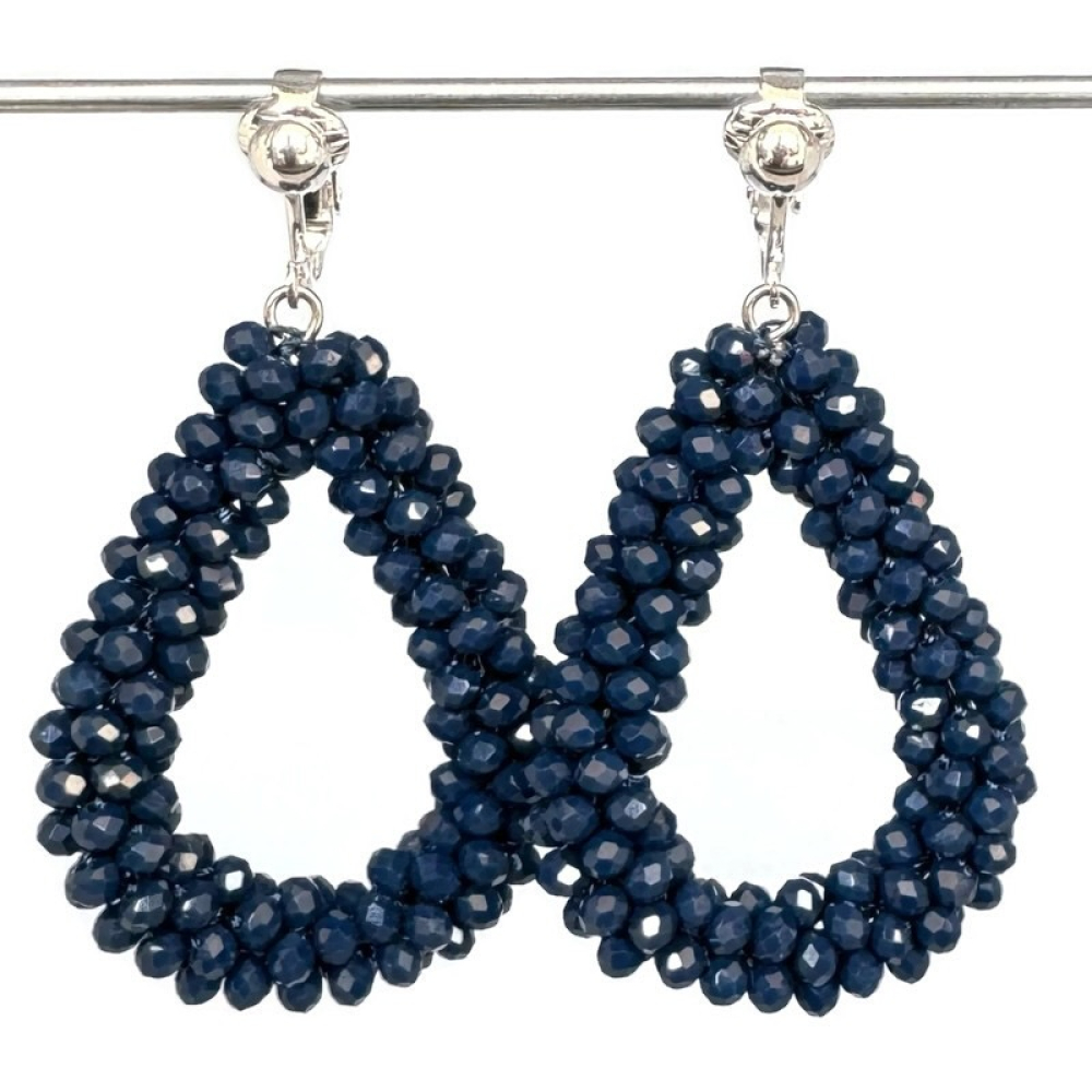 Clipoorbellen donkerblauwe kralendruppel, hangoorbellen