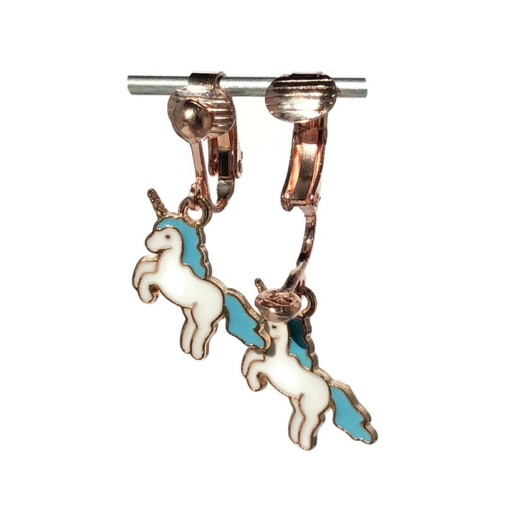 Leuke steigerende eenhoorn/unicorn-clipoorbellen in het rozegoud (kleurig)!