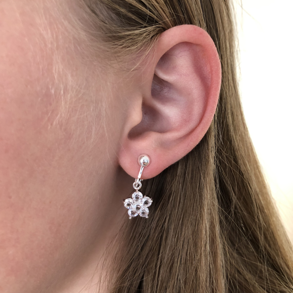 Clipoorbellen glitterbloem kleurloos, hangoorbellen