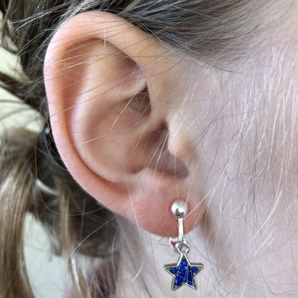 Leuke blauwe glittersterretjes-clipoorbellen.
