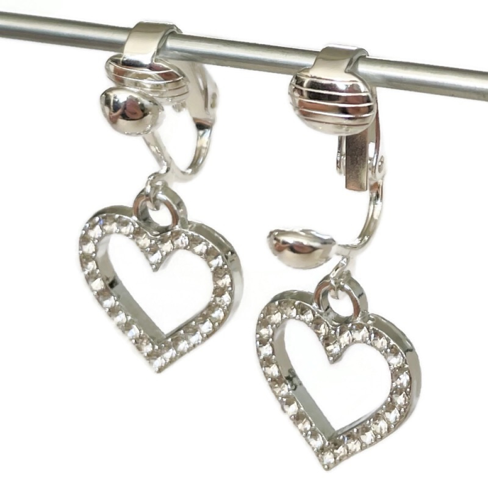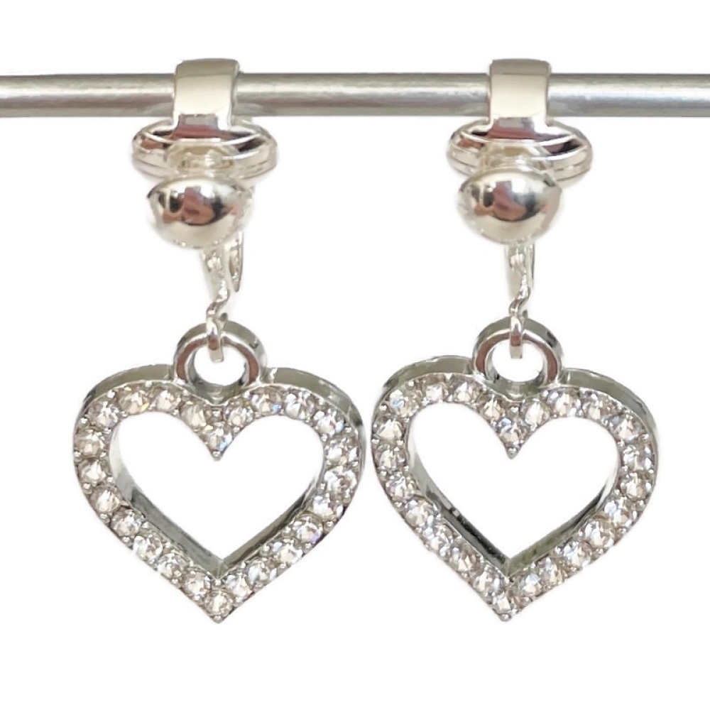 Leuke clipoorbellen met zilverkleurige hartjes met heel veel glittertjes.