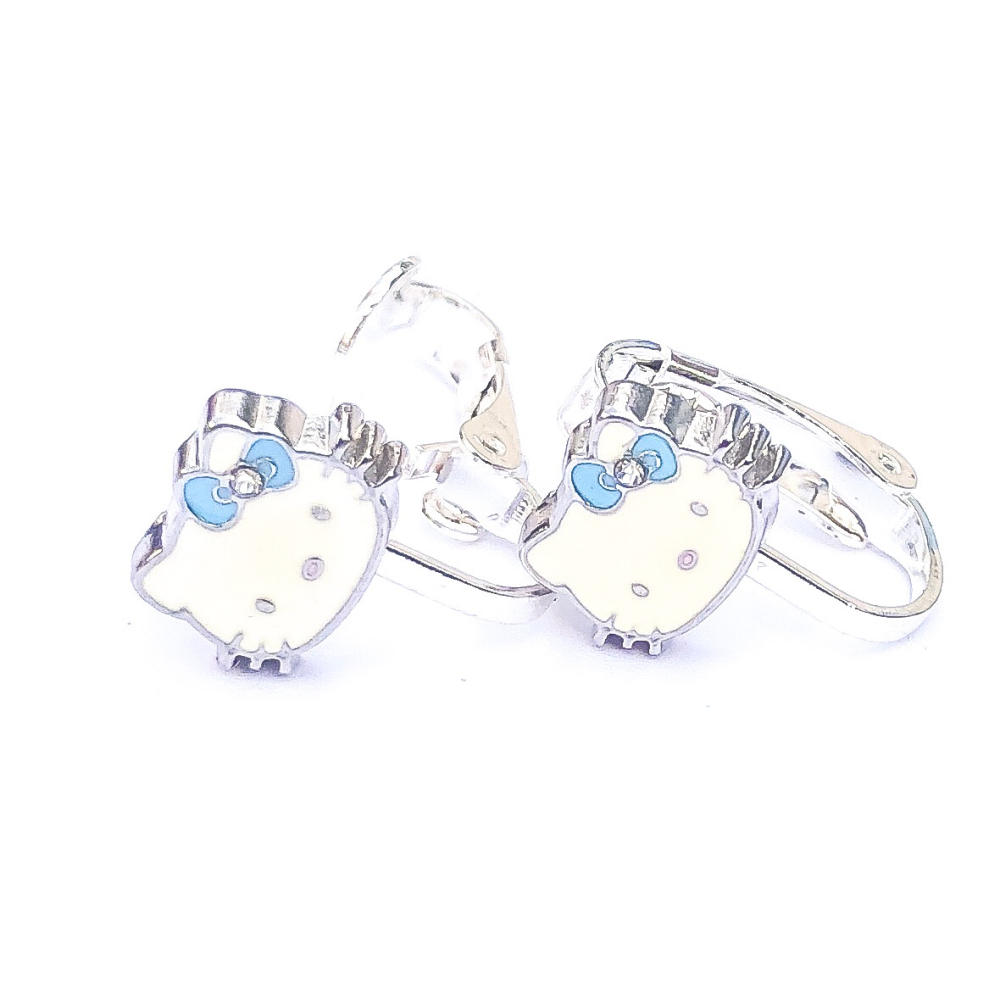 Superschattige Hello Kitty clipoorbellen. Dit Hello Kitty oorbelletje is een knopje en hangt dus niet. De grootte is ongeveer 10x9 mm en wordt gewoon op het oorlelletje geklemd.