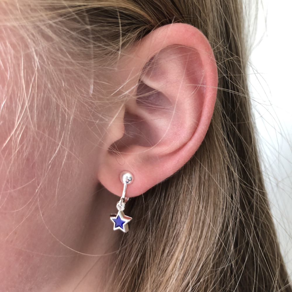 De sterretjes oorbellen zijn ongeveer 1,8 cm (gemeten vanaf de bovenkant van het oorknopje). Het sterretje zelf is 6 mm. Superklein dus!
