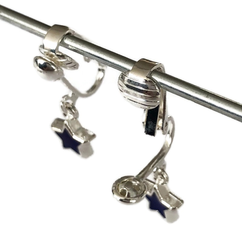 Leuke donkerblauw ministerretjes-clipoorbellen.