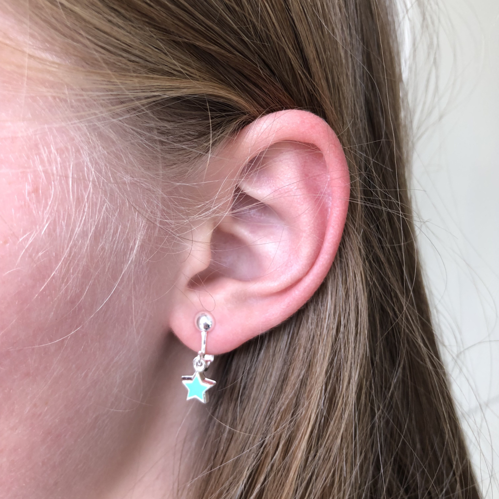 Leuke turquoise ministerretjes-clipoorbellen.
