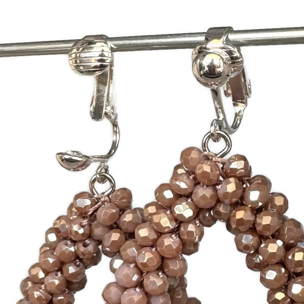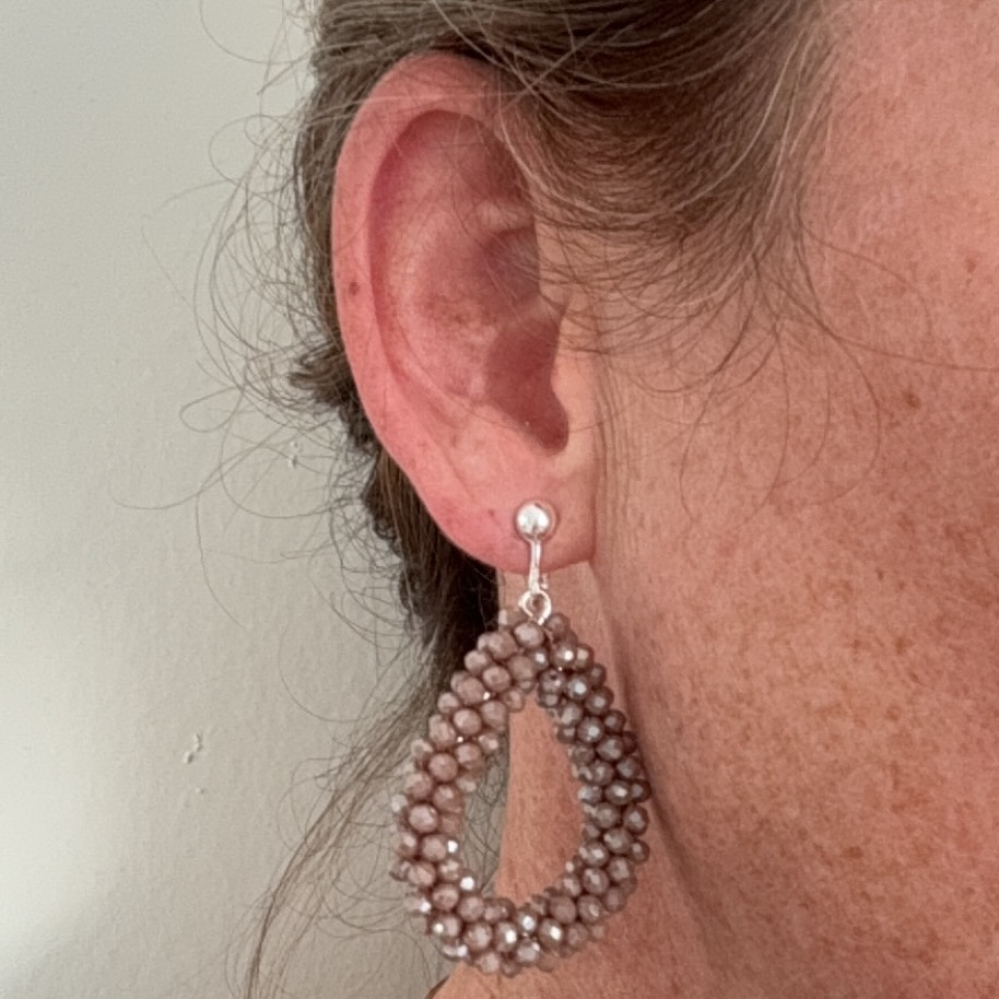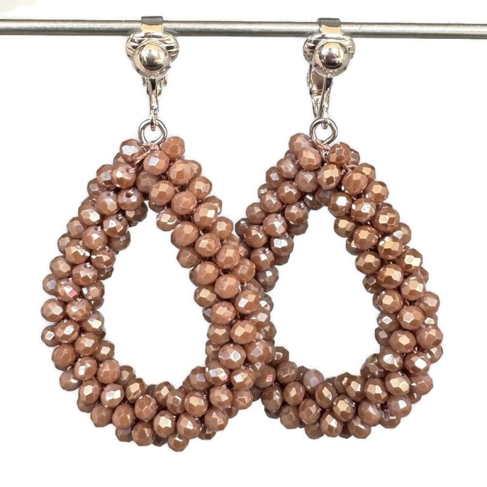 Clipoorbellen taupe kralendruppel, hangoorbellen