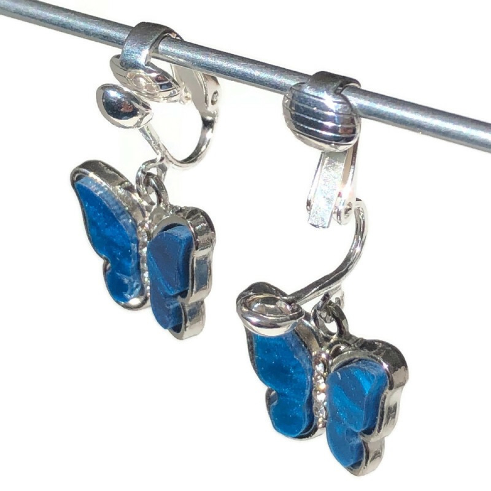 De lengte van deze oorbellen is ongeveer 2,5 cm (gemeten vanaf de bovenkant van het oorknopje). De vlinders zijn zilverkleurig en zijn 13x18 mm.