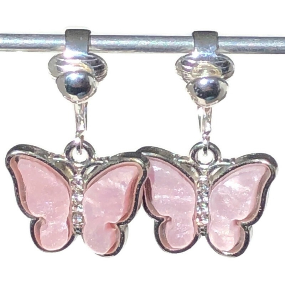 De lengte van deze oorbellen is ongeveer 2,5 cm (gemeten vanaf de bovenkant van het oorknopje). De vlinders zijn zilverkleurig en zijn 13x18 mm.