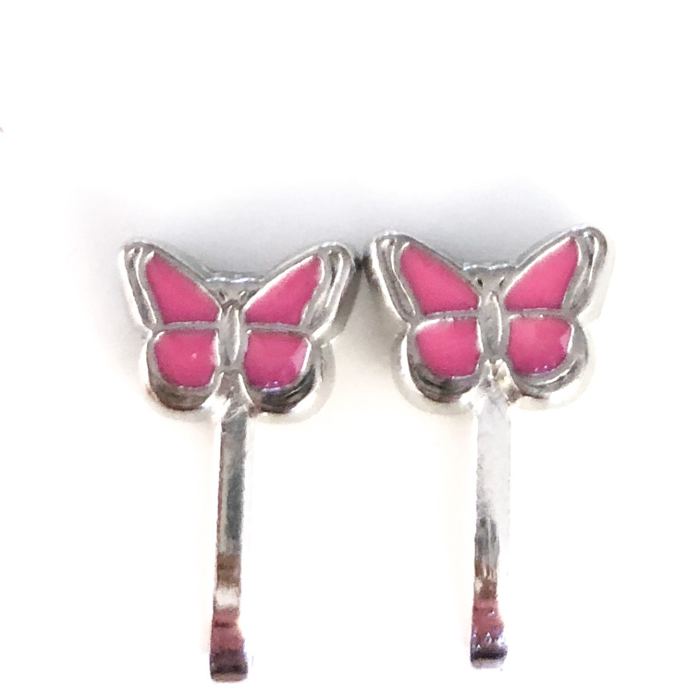 Dit oorbelletje is een knopje en hangt dus niet. De grootte van het vlindertje is ongeveer 7 mm en wordt gewoon op het oorlelletje geklemd.