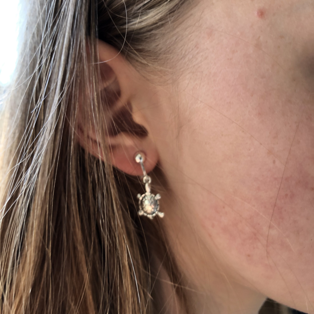 Clipoorbellen met een schildpad. Ze zijn zilverkleurig, dus passen overal bij.