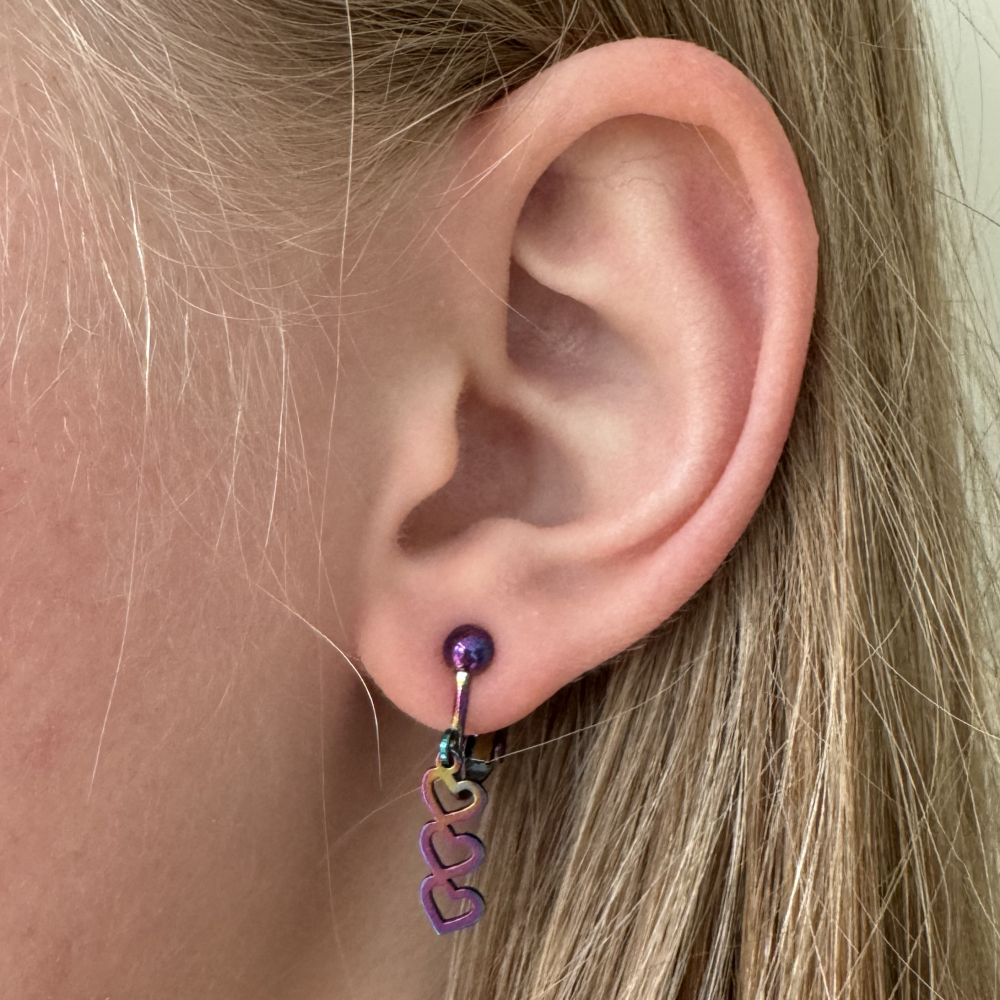 De oorbellen zijn van stainless steel met een Ion Plating regenboogkleurig laagje en zijn licht in gewicht, waardoor het heel comfortabel draagt. De oorbellen zijn handgemaakt.