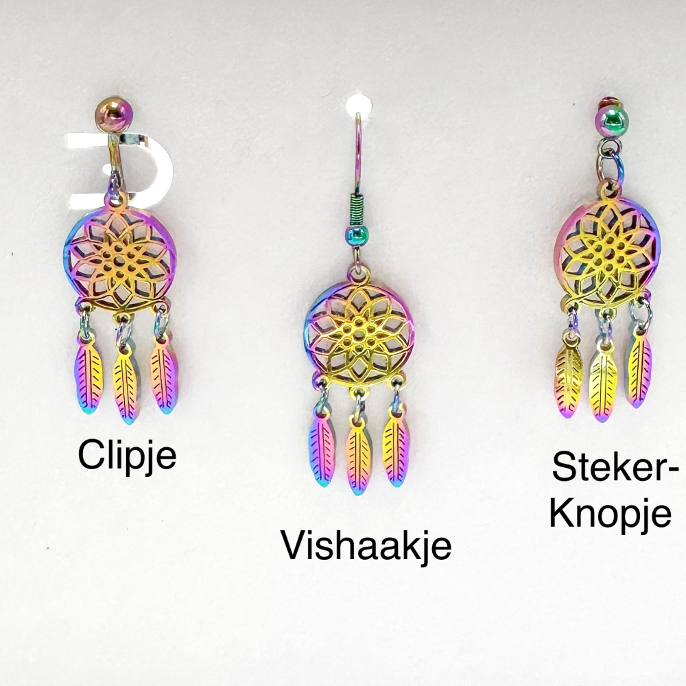 Deze oorbellen zijn ook mogelijk als stekeroorbellen, met het vishaakje in regenboogkleur.