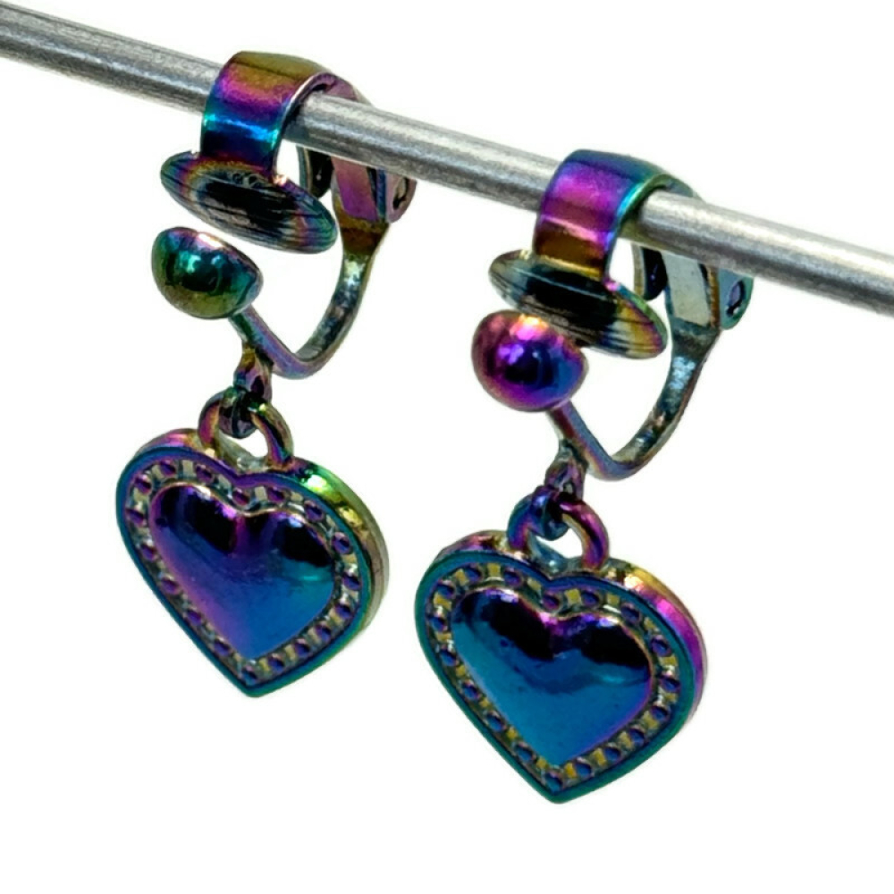 Het clipje en het hartje is stainless steel met een Ion Plating regenboogkleurig laagje. De oorbellen zijn handgemaakt.